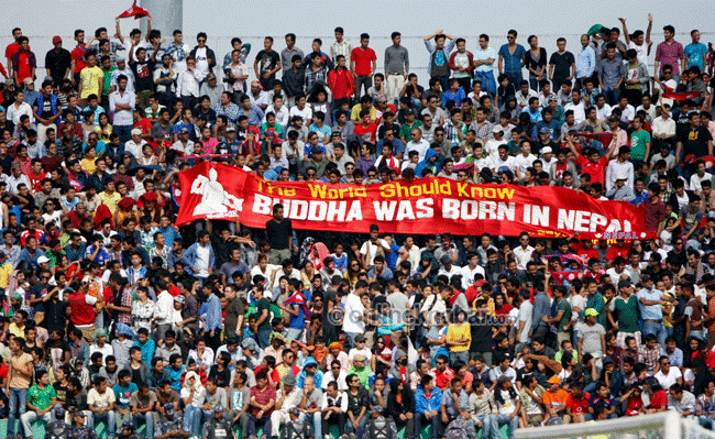 It was an international football match between two sovereign nations. People were also holding other banners which was within scope of the match, for example, "We are Red," Which means we support our team. But the Banner about Buddha seems like out of context for this match. It is a football match. One Indian even said to Kantipur TV, the spectators are hostile. If we, Nepalese, cannot provide a warm and comfortable arena to these international players then in near future they might even reject coming to Nepal for any kind of match mentioning the hostile nature of Nepalese towards Indians players which infact lowers their self-esteem and can affect their ability to perform. Once upon a time, we used to say, "Atithi Devo Bhawa, which means guests are like gods. And now we treat our guest as demons! If this is the culture we are heading, I don't see any hope for Nepal in near future. Culture plays a huge role in the development of a nation. If one cannot even control his/her sense organ and indulge in sense gratification then such behavior will ultimately lead to suffering. Similary, if Nepalese as a whole don't built a culture which is more intellectual rather than hardcore negative emotion based impulse, then there is no doubt that Nepal will vanish like darkness vanishes when sun shines in the morning!
