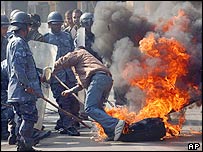 It looks the telephone lines to the outside world is also cutoff. Nepalnews.com is fully silent. Kantipuronline.com is not updating anything. Ashu is under country arrest (equivalently), because he can not connect to internet, otherwise he would have spoken something. So, 23.5 million peoples are under arrest and Ashu is one of them. No problem, there are some news agency they will wire some important messages, they carry international telephone based on satelite, like Iridium used to be in the past: 900dollars a month. Some peoples are there who can afford such costly media items and they are worth under such extreme conditions. Now, did you try to have your own network as I proposed in a thread of Earthquake disaster so that you can find whats going on in Nepal. If you did not have, then you are going to suffer more "mentally". I am not worried much about my relatives, because they are not in active politics, so they will close their lips and just keep watching. I am of course worried about the fate of Nepal as a whole and intl news media will surely bring or leak some;thing. Gyanendra is doing more harm to himself. He is bating, because political parties did not work. In fact political parties failed. UML always made double standard of pulling out of govt. and Deoba was impotent. Girija was busy in finding a place where RNA will search his helicopter or bag and making hue and cries. So, all political parties were Kam kura ekatira kumlo boki thimi tira... Main part of the blame goes to Girija, then, UML and then finally Deoba. Mukundo dhari human rightists and journalists are useful idiots who were unable to forecast what could happen. Should Maoists be blamed? Who cares. GP