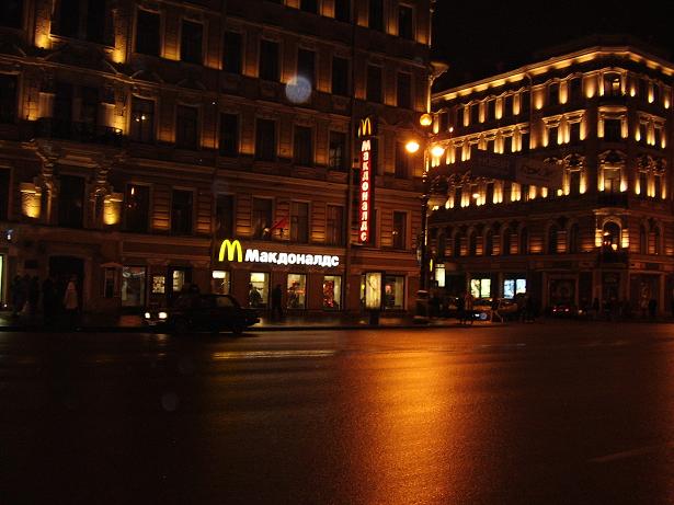 Alaxendro Nevskayar at night - The most sophistacated road of St Petersburg, view from front seat of bus at night
