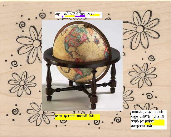 लौ, मास्टर्नी दिदीलाई यो पुरस्कार मेरो नाम मिलाउनु भएकोमा, बधाई छ है! नामको मामलामा त तपाई च्याम्पियन हुनु हुँदो रैछ।