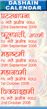 दशै आएर के गर्नु, बिदेशको दशै सधै खल्लो नै हुने रैछ। न त पिङ खेल्न पाइने, न त टिका नै लाउन। ४ बर्स हुने भयो अब त यो दशैमा.. बुवा-आमा को हातको टिका लाउन न पाको पनि। :( :( :(