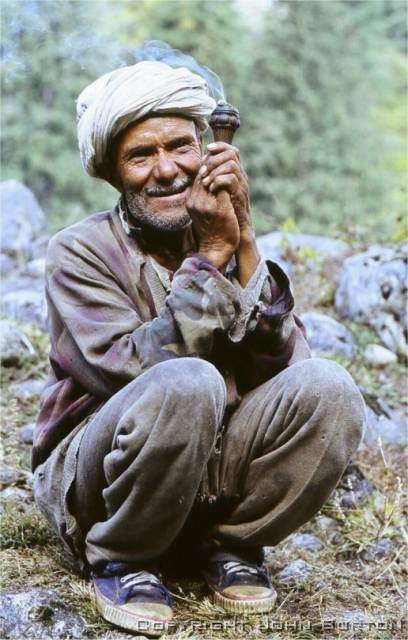 बबे ले गाँजा तान्दै छ।