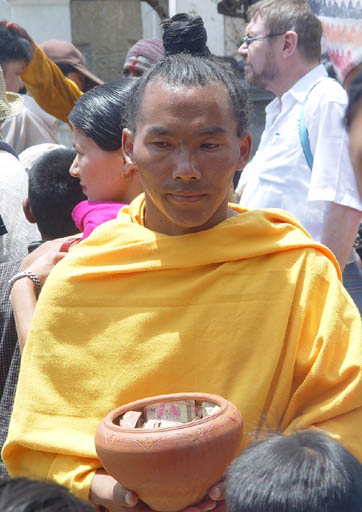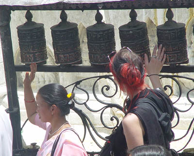 Donate or not... I pray for peace. A regular sight in Swayambhu.