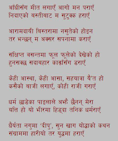 nepe timro gazal malai dherai ramro lagyo. I am surprised sajha has got some very talented individuals like you. keep up the good work. hope to see from you more.