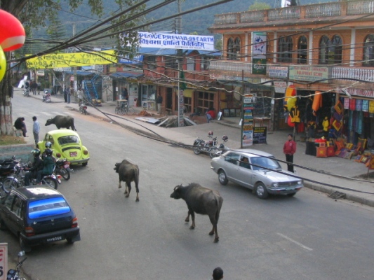 The third picture, one with the buffalos strolling on the street, is that Pokhara ko lake side street near Phewa? The last one with "it's Valentine's Day" caption is not funny at all. I hope you do not find men beating their wives funny.