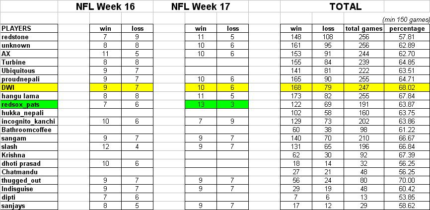Following top 13 players (in red) are qualified for the next round :D:D Glad i am included ;);)
