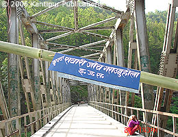 The signboard on the toll gate reads "Vehicle Checkpoint- Maoist Area People's government." The Maoist rebels put up the barricade at Tamakoshi bridge along the Lamosanghu-Jiri road section in order to "tax" passing vehicles. (Photo: Rajendra Manandhar ) Sale chor Mao Badi haru lai jungle tira hoina , yeni haru ko neta prchanda lai marnu parcha ho...!!!
