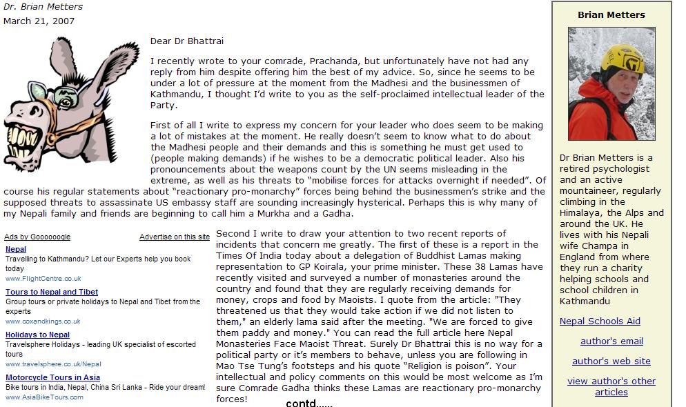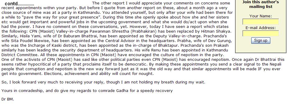 I really liked the article. It is an irony that the Maoists talk about Nepotism!