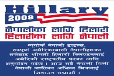 How can NYN Times approve of Hillary in the name of all Nepalese? I do not approve of Hillary. I have made up my mind. If Nas takes down all the semiporn pictures from Sajha, I will register as republican and vote for Ron Paul. If he does not do so I will register as Democrat and vote for Barack. NYN Times cannot approve of Hillary in my name, because they never asked me and I never gave them my word.