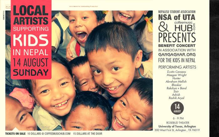 Host : Thalia Anthony Organizer : Nepalese Students Assoication of University of Texas @ Arlington + CoffeeMusicHub.com Charity : Gangaghar.org