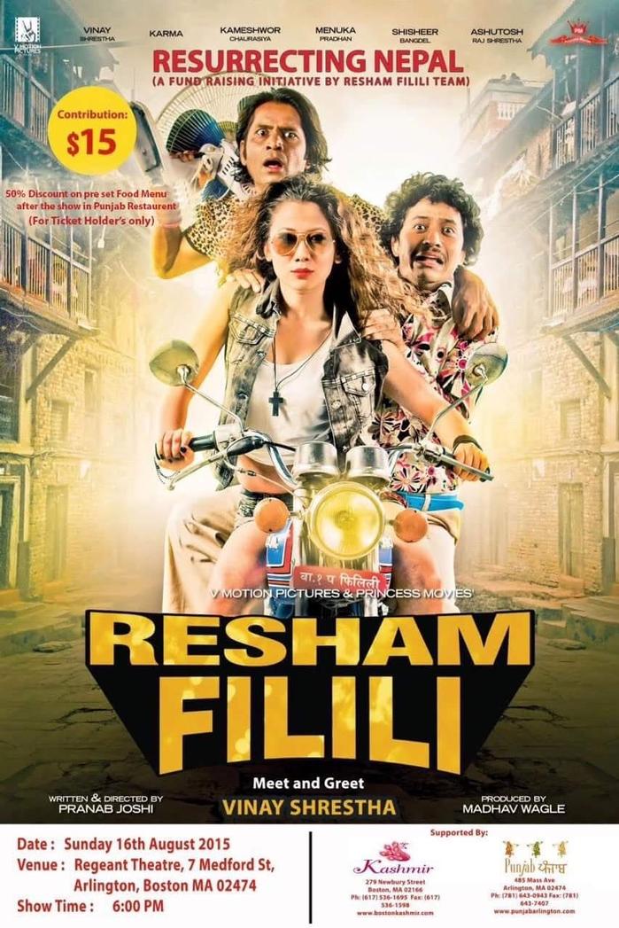 A fund raiser for Resurrecting Nepal presented by V-Motion Pictures, step in for an exclusive evening to meet and greet the Fillili Star, Vinaya Shrestha, followed by the fantabulous screening of Resham Fillili.