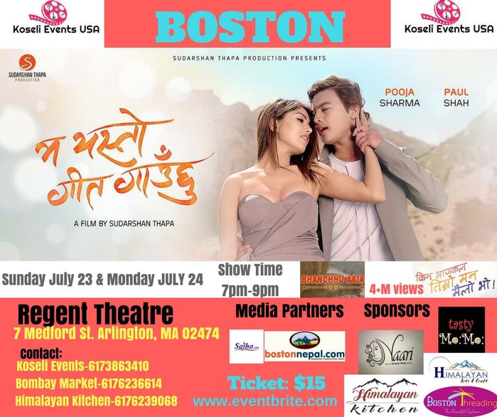 The Most Awaited Romantic Melodrama Film- "म यस्तो गीत गाउँछु" featuring the most hyped Crush-Couple of Nepali Cinema -Paul Shah & Pooja Sharma- will be Screening in BOSTON. Official Trailer: https://youtu.be/lAFYY2Aa-Ys Title Track: https://youtu.be/50kklGefAc Director: Sudarshan Thapa Starring: Paul Shah, Pooja Sharma, Saroj Khanal.