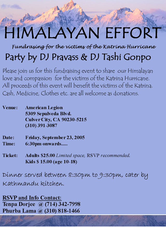 Himalayan Effort - Katrina Hurricane Fundraiser Party, CA