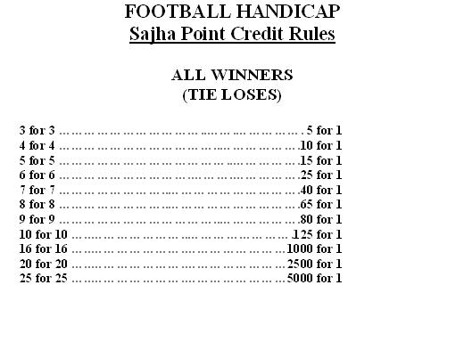 Hello Football fans, I have created Football Handicap for this weekend. Let's see how good you are :) No Query Allowed :)
