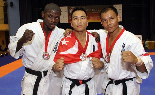 Verdict was that Singapore came in top and also bagged the third spot. This was Singapore’s best showing in both regional and international full contact (kyokushin) karate competition. Below: Singapore’s Barja Kumar Rai, 26, in action against Hong Kong’s James Kouame, 30, to clinch the first place. Just look at the size and height of James Kouame. Though he was much bigger in size, Barja overcame his opponent. Like I_Nepali said "Fighting is not all about size and strength- it takes more than that."