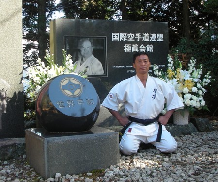 Sensei Ambar Bahadur Rai is from Okhaldhunga. During his school days, one of the Indian Army (Boxer) happened to introduce him to martial arts and he was eager to learn the art from then. He came to Singapore in 1989. Karate instructor Sensei Hom Nath Gurung who is 4th Dan Black belt in Kyukoshin Karate introduced him to the martial art. Kyokushin Karate, a full contact Karate is well known for its tough training. He faced lots of full contact sparring in his early days when he was just white belt. But this is what makes all Kyokushin fighters strong, both mentally and physically. During his free time, sensei Rai started to train in Kyokushin Karate. He joined Kyukushin Karate in Gurkha Contingent Dojo in the year 1990. He achieved his 1st Dan Black Belt in 1993. Currently he is 2nd incharge of the Gurkha Contingent Dojo. He is also the committee members of Singapore Oyama Karate-do Kyokushinkai-kan. Sensei Ambar Bahadur Rai Participated Tournaments are: 1. Singapore international Open Karate national selection tournament 1992. 2. Fighter in International Open Karate tournament at Singapore Indoor stadium 23-24 Oct 1992. 3. Singapore open Karate tournament 1995. 4. Oyama Karate Full-contact knock-down tournament 2000. He has the following experiences for officiating: 1. Official at 9th World Open Karate Tournament Tokyo, Japan 16-18 Nov 2007 2. World Kyokushin Karate seminar at Mount Mitsumine, Japan 19-21 Nov 2007 3. Kyokushin Karate seminar and 3rd Dan upgrading test in Shanghai, China 5-10 Jun 2008 4. Organizing committee in the 11th Asia Full Contact Karate Championship Singapore 25th Oct 2008 Osu! Picture of Sensei Ambar Bahadur Rai. Behind him is the resting place of (Mas) Oyama, founder of kyokushin karate.