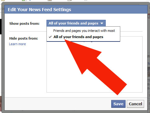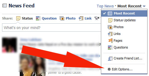 If you haven't changed it, you need to change it so that you see updates from all your friends again. Click on  Most Recent  link and select Edit Options